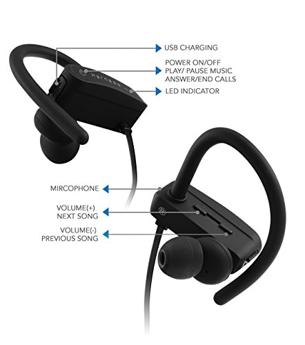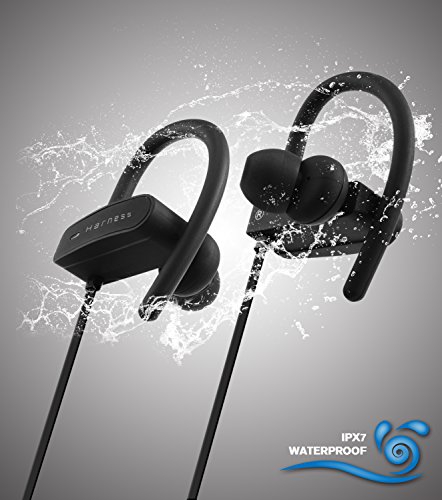 -. Binding : Wireless Phone Accessory -. Brand : Harness -. Color : Black -. EAN : 0868412000403 -. Feature : TRUE HD HIGH FIDELITY SOUND: State of the Art Acoustics delivering superior energetic highs and brilliant bass. Impressive sound and volume capability through the V-Shaped sound signature profile and passive noise cancelling. / WATERPROOF IPX7 RATING, COMFORTABLE, AND SECURE FIT: Lightweight and pleasantly comfortable with soft flexible ear-hooks and multiple size silicone ear-tips included. Secure fit earphone earbuds for all activities including Sports, workouts, running, & biking. The Harness SC750 Headphones are designed to stay exactly where you want them, on your ears, regardless of your favorite activities. / LONGEST BATTERY LIFE: With the latest polymer lithium battery technology, enjoy up to 8 hours of listening, 240 hours of standby, and 2-hour charge time with the included universal USB cable. / BLUETOOTH V4.1 WIRELESS TECHNOLOGY WITH CVC 6.0 NOISE CANCELING. BUILT IN MICROPHONE & SIDE CONTROLS w/ PLAY/PAUSE, NEXT/PREVIOUS, AND ANSWER/HANG-UP CALLS. -. Label : Harness -. Manufacturer : Harness -. MPN : SC750 -. PackageQuantity : 1 -. PartNumber : SC750 -. ProductGroup : Wireless -. ProductTypeName : WIRELESS_ACCESSORY -. Publisher : Harness -. Studio : Harness -. Title : HARNESS Wireless Bluetooth Headphones, Waterproof HD Sports Earbuds, HiFi Sound w/Mic & Side Controls. Best Earphones for Gym Workout, Running. 8 Hr Battery, Noise Cancelling Secure Fit Headset -. UPC : 868412000403