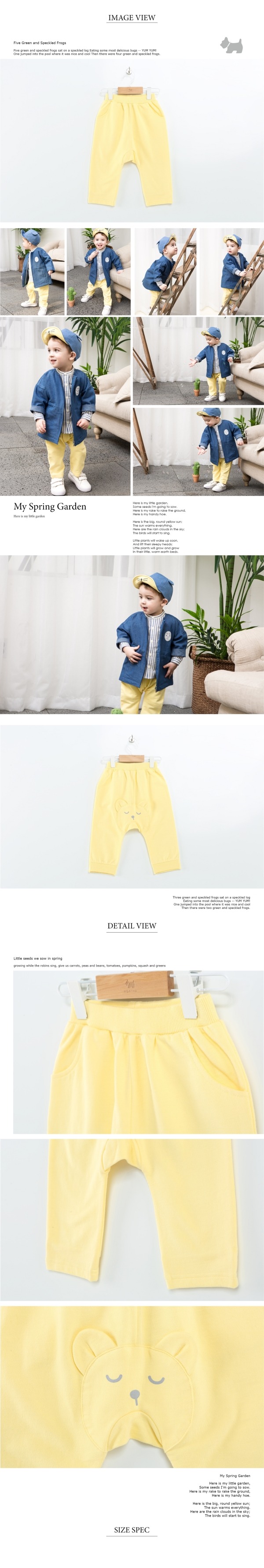 엉덩이에 입체 귀와 표정이 포인트로 들어간 편안한 스타일의 다이마루 배기팬츠입니다.
