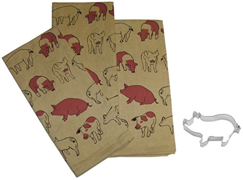 - Pigs Hogs on Tan Cotton Dish Towels with Cookie Cutter Kitchen Set Bundle (4 Items) Includes: