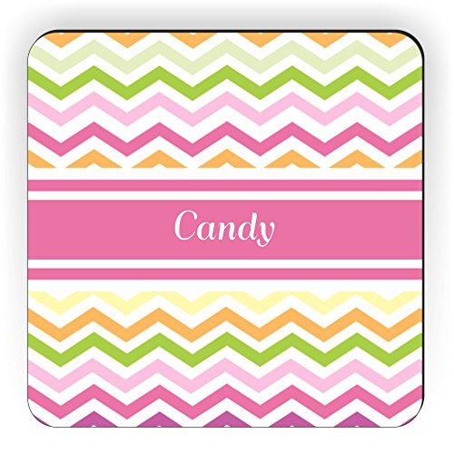 Rikki Knight "Candy" Pink Chevron Name Design Square Fridge Magnet