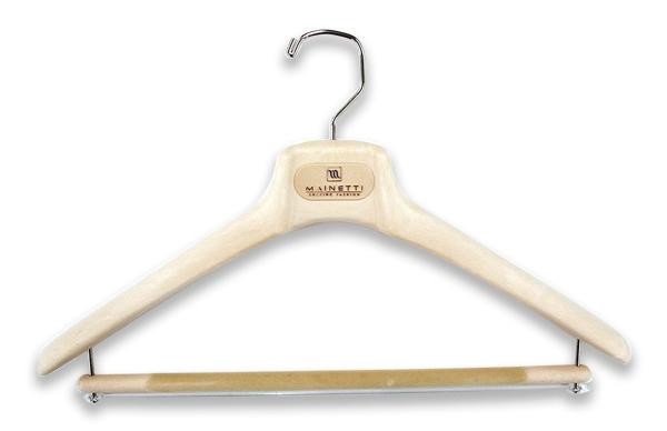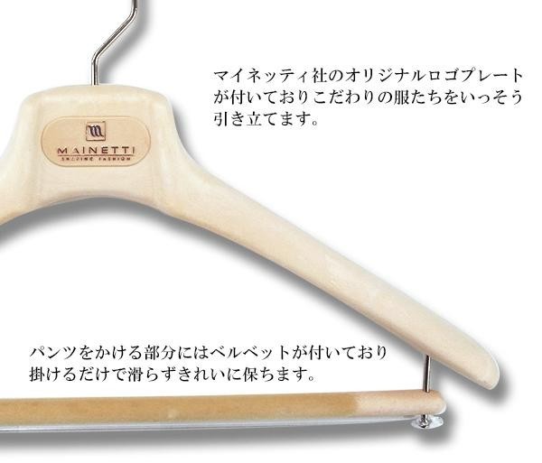 メンズのスーツ、ジャケットに最適なハンガー。人体工学に基づき設計されており、洋服をバランスよく美しく掛けることができます。パンツを掛けるバーにはベルベットが付いており、掛けるだけで滑らずきれいに保ちます。 |