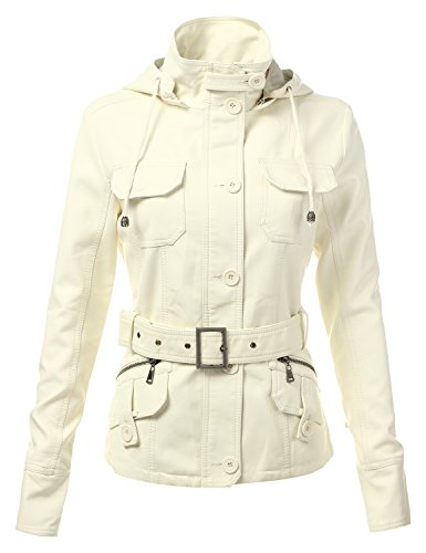 -. Title : Luna Flower Women's Belted Babydoll Faux Leather Trenchy Coat Jackets