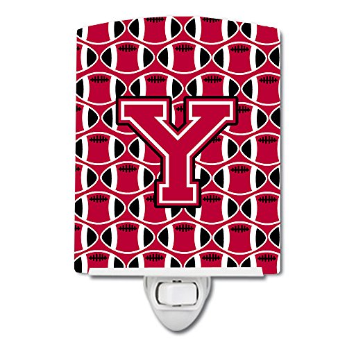 Caroline's Treasures Letter Y Football Crimson and White Ceramic Night Light, 6 x 4", Multicolor