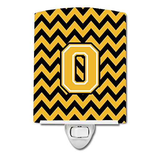 Caroline's Treasures Letter O Chevron Black and Gold Ceramic Night Light, 6 x 4", Multicolor