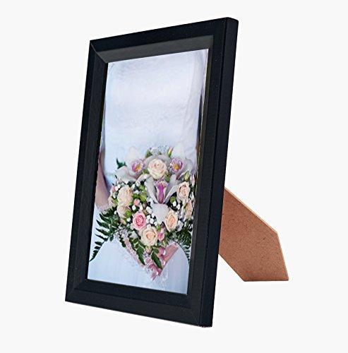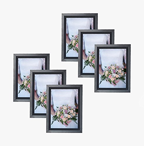 MDF Wood Black Contemporary Picture Frame 5X7 Photo Display with PVC Lens, Easel Back, Hanging Clip | 6 PIECE SET (Black, Set of 6)