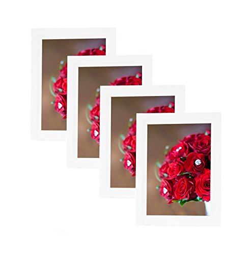 MDF Wood White Contemporary Picture Frame 5X7 Photo Display with PVC Lens, Easel Back, Hanging Clip | 4 PIECE SET (White, Set of 4)