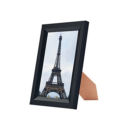 MDF Wood Black Contemporary Picture Frame 4X6 Photo Display with PVC Lens, Easel Back, Hanging Clip | 4 PIECE SET (Black, Set of 4)