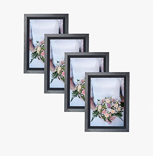 MDF Wood Black Contemporary Picture Frame 5X7 Photo Display with PVC Lens, Easel Back, Hanging Clip | 4 PIECE SET (Black, Set of 4)