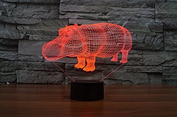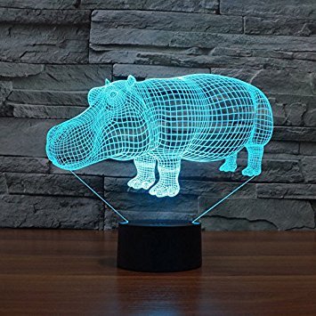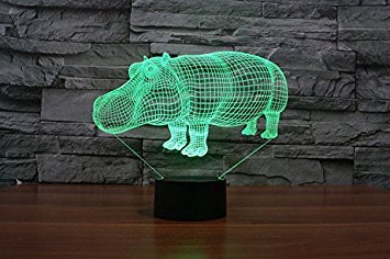 SUPERNIUDB 3D Hippo Night Light LED USB 7 Color Change LED Table Lamp Xmas Toy Gift