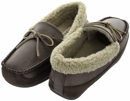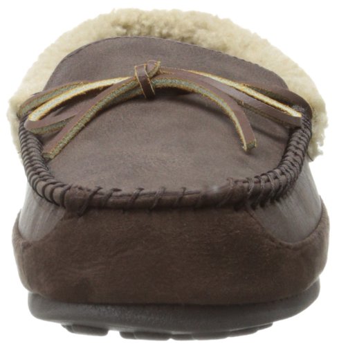 -. Feature : A grippy and flexible outsole is built for indoor and outdoor lounging in this plush moccasin slipper.