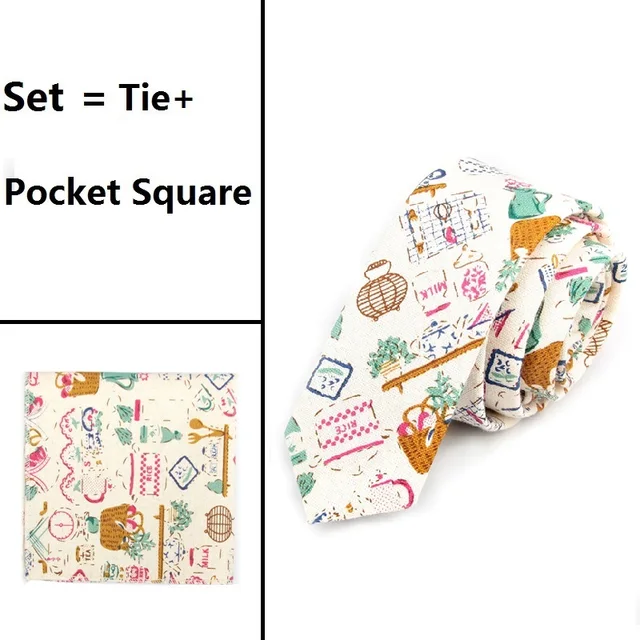 | [해외]패션 목 넥타이 세트 인쇄 넥타이 포켓 스퀘어 |