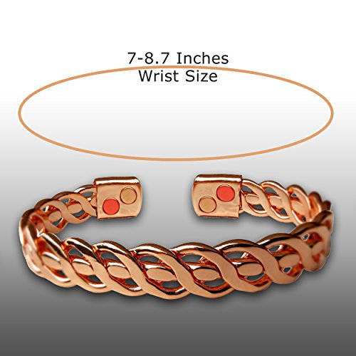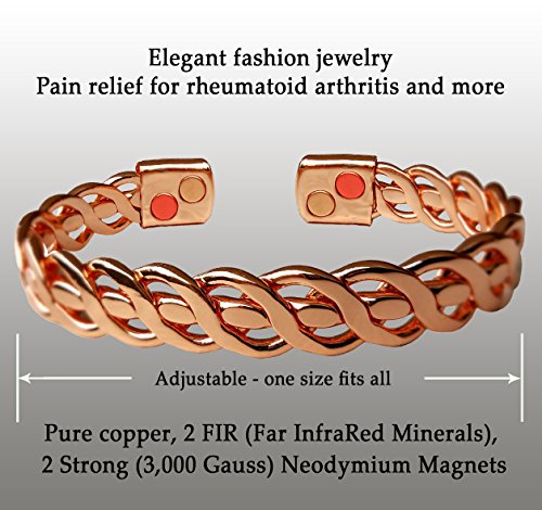 -. Feature : DESIGNED TO HEAL ARTHRITIS: Using the health benefits of pure copper, neodymium magnets and Far Infra-Red mineral, this bracelet relieves Arthritis Pain, joint pains, Carpal Tunnel, RSI, Migraines, Fatigue and improving blood circulation. / BEAUTIFUL & STYLISH THERAPY BRACELET: Gift ready gorgeous and attractive this Arthritis Therapy bracelet was designed to look stunning no matter who wears it, making it the ideal healing and wellbeing aft for anyone. / UNISEX - MEN AND WOMEN DESIGN: One size fits most male and female hands, and it's reversible to fit both left and right hand. Regardless of gender you'll look stylish and attractive with this beautiful bracelet. / PURE 99.9% COPPER: This is not the ordinary stuff other bracelets are made off. This is a Pure Copper bracelet and includes all benefits of solid pure copper and strong rare-earth Neodymiunm magnets. / WE'RE HAPPY WHEN YOU ARE - 30 DAYS MONEY-BACK GUARANTEE: Our top P.R.Iority is your satisfaction. We truly care about you and provide a 30-day refund policy. So go ahead and buy this Beautiful Pure Copper Therapy Bracelet with confidence!