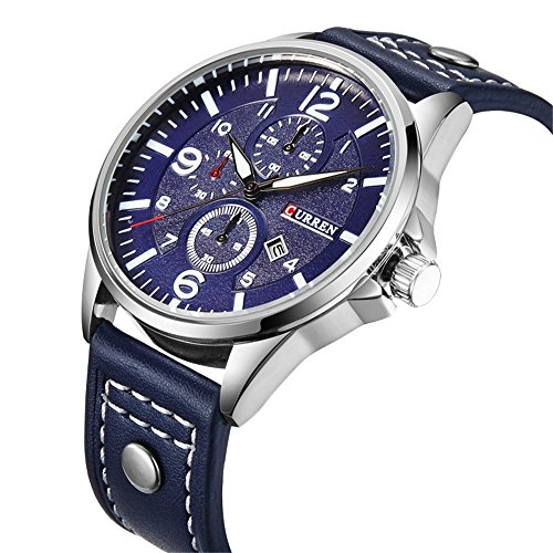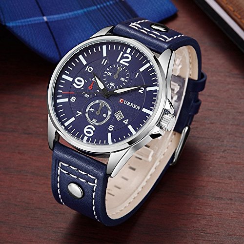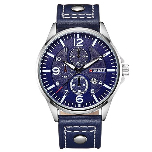 CURREN Curren 캘린더 쿼츠 손목시계의 맨즈 스포츠 군사 품질 PU 의 가죽 밴드