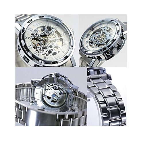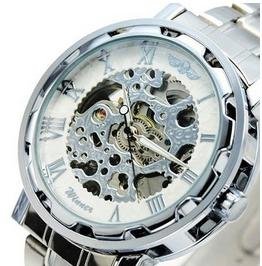손목시계 맨즈 풀 스켈리턴 자동 감기 손목시계 기계식 손목시계 맨즈 스켈리턴 실버&화이트