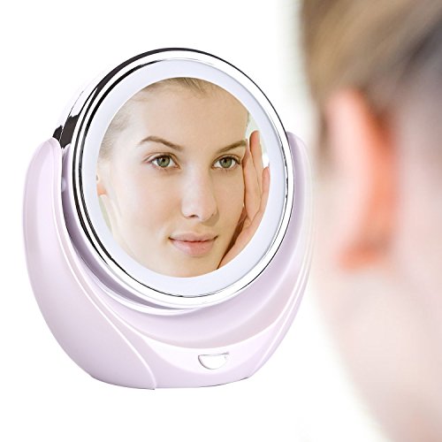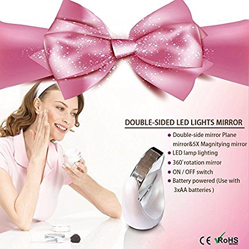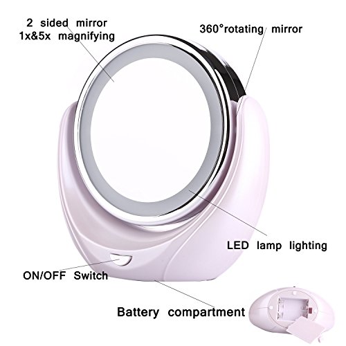 Gospire Double-sided LED Light Makeup Mirror 5x Magnification 360 Degree Rotating Vanity Mirror Bathroom Mirror Travel Mirror Screen Bright Tap Lighted...