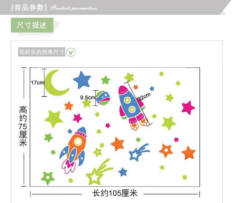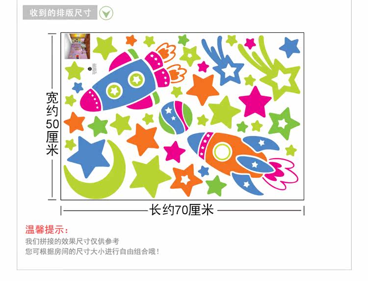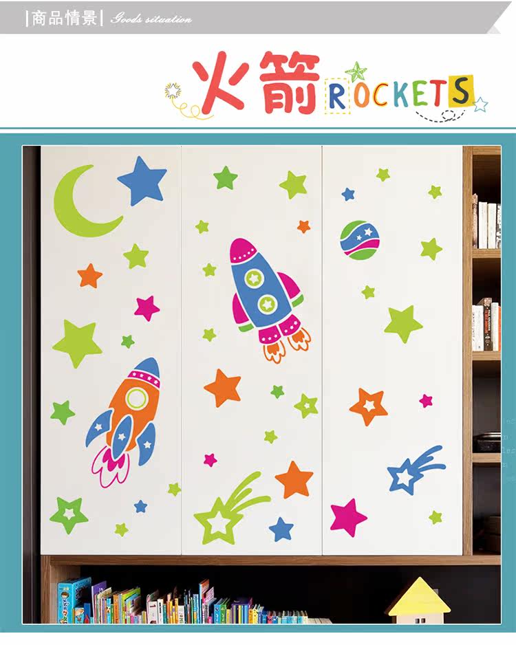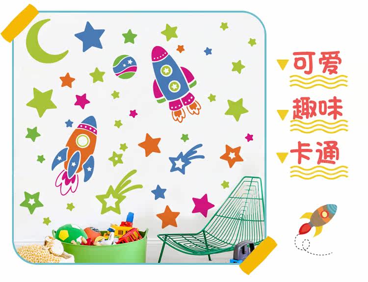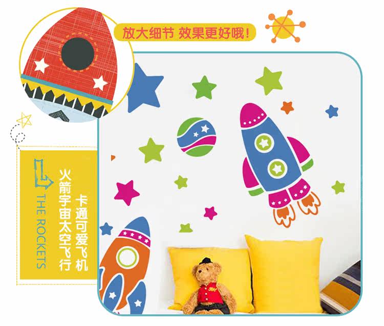 卡通可爱太空飞机火箭幼儿园儿童房宝宝卧室天花板可移除墙贴纸