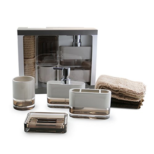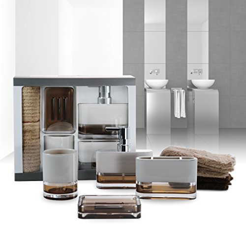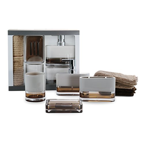 IMMANUEL 6-Piece Bathroom Accessories Gift Set - Acrylic | Two-Tone | Brown | With Gift Box