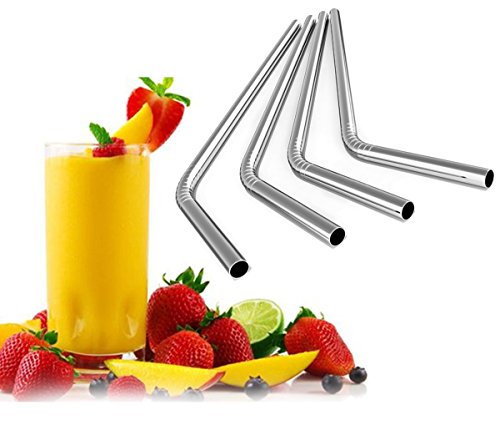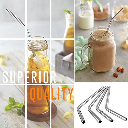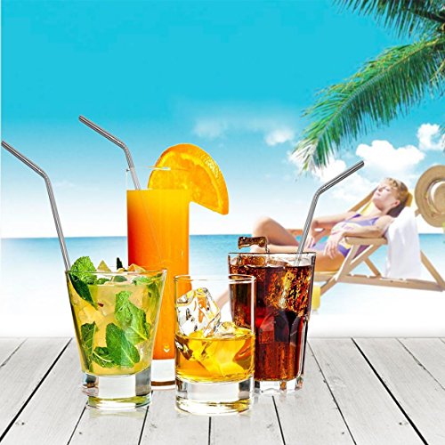iRainy Stainless Steel Drinking Straws, Set of 6 with Cleaning Brush, Reusable Non-Toxic Eco Friendly Straws for Juice Smoothies