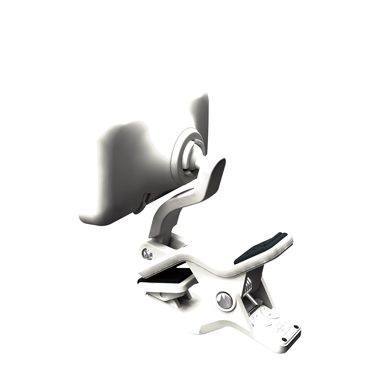 The rubber cushion of the clip adopts a slim straight shape so as not to bulk and by having the same curved structure of the clip / movable arm / display part all the same, it can be stored compactly without waste.