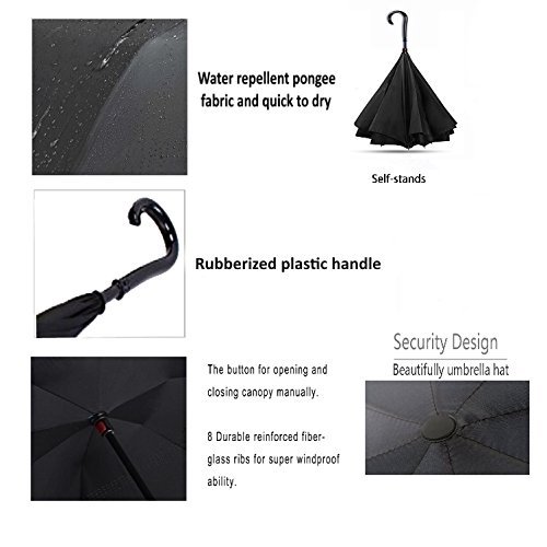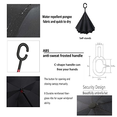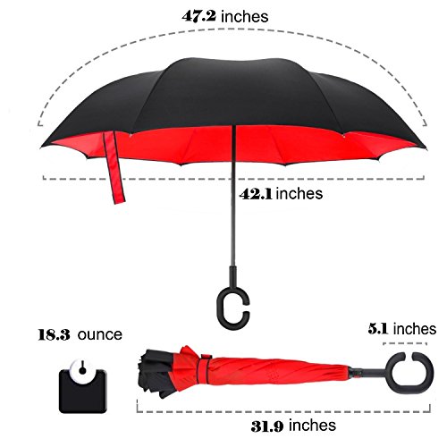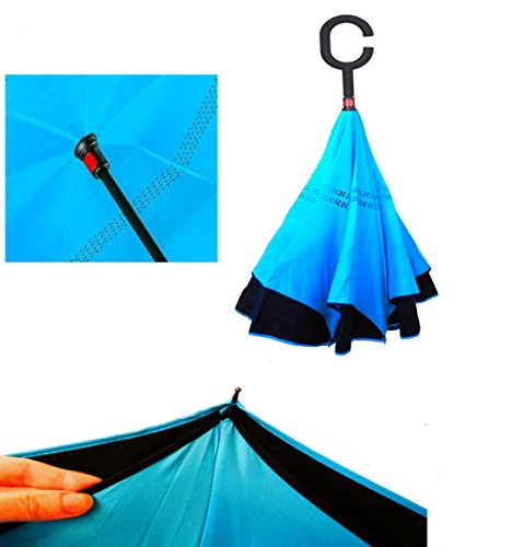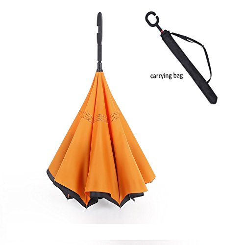 -. Title : Double Layer Inverted Umbrella Cars Reverse Umbrella, Windproof UV Protection Big Straight Umbrella for Car Rain Outdoor With C-Shaped Handle and Carrying Bag