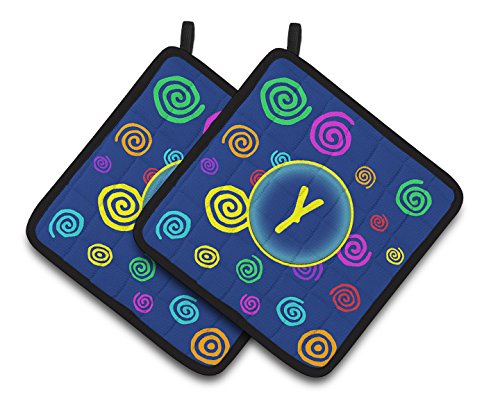 Caroline's Treasures CJ1011-YPTHD Letter Y Initial Monogram with Blue Swirls Pot Holders (1 Pair), 7.5" x 7.5", Multicolor
