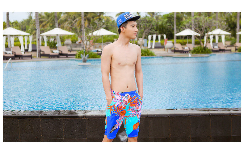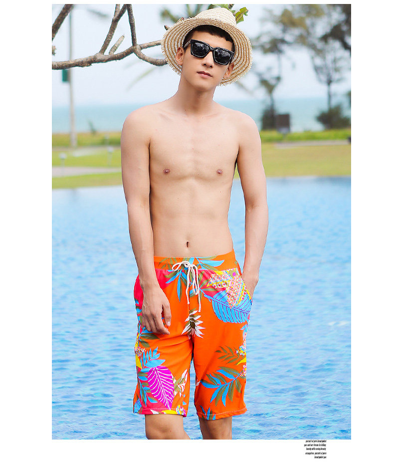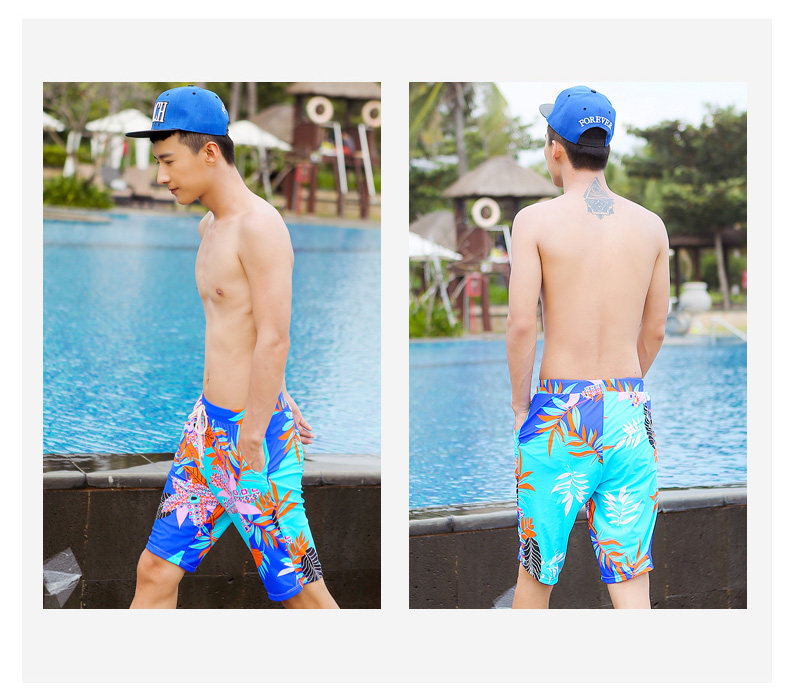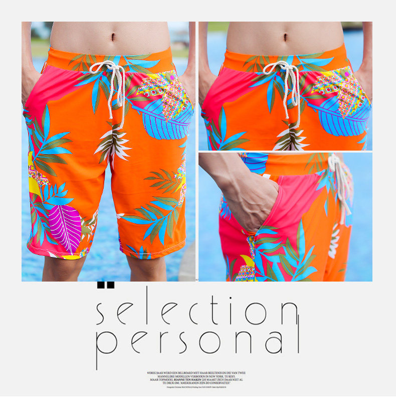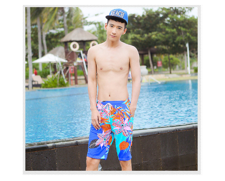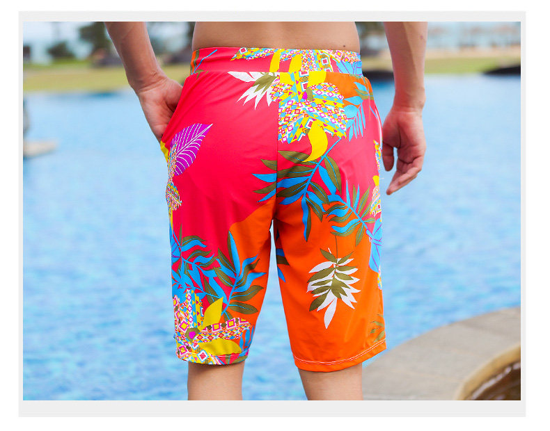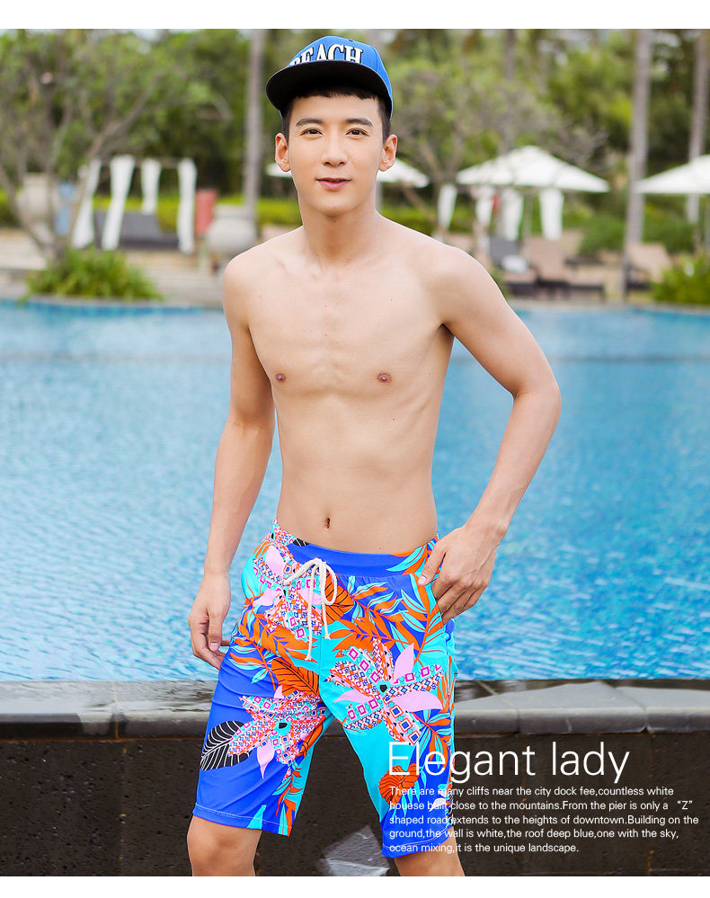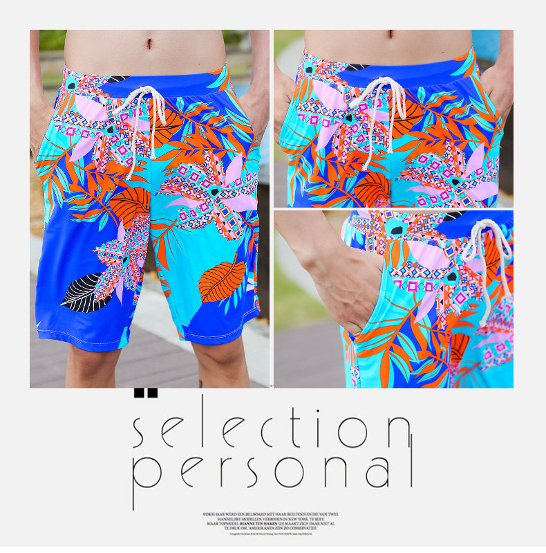 夏季新款游泳裤 时尚男士休闲运动沙滩裤印花度假五分裤游泳裤