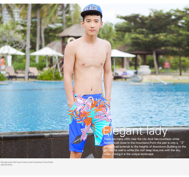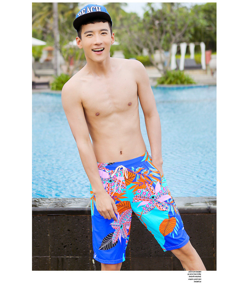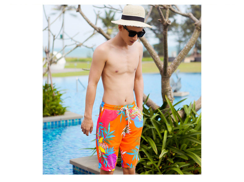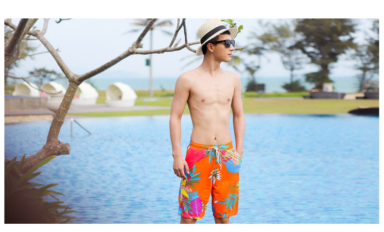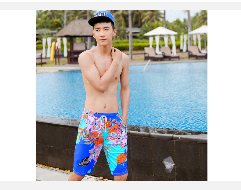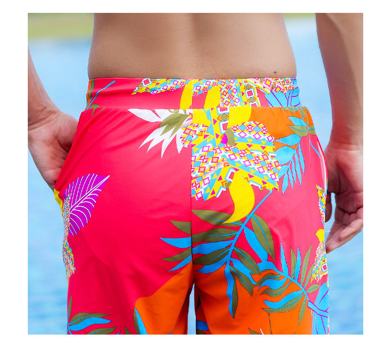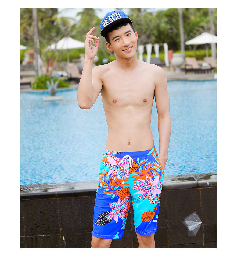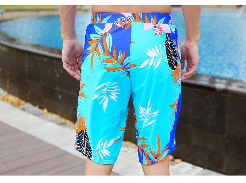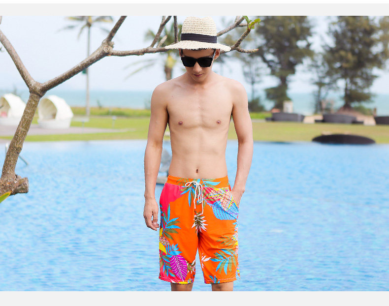 夏季新款游泳裤 时尚男士休闲运动沙滩裤印花度假五分裤游泳裤