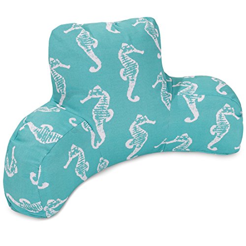 Studio : Majestic Home Goods LG Publisher : Majestic Home Goods LG Binding : Lawn Patio Product Description Now you can kick back and relax anywhere, inside or out, with this comfortable and supportive reading pillow. The majestic home goods indoor/outdoor teal sea horse reading pillow provides back and head support that is perfect for many activities such as reading, working on your laptop or lounging with friends. Stuffed with a super loft recycled polyester fiber fill, the reading pillows zippered slipcover is woven from outdoor treated polyester and has up to 1000 hours of U.V. Protection. Spot clean slipcover with mild detergent and hang dry. Do not wash insert. 0