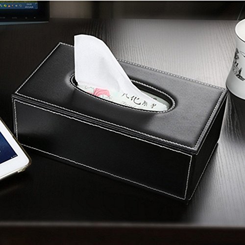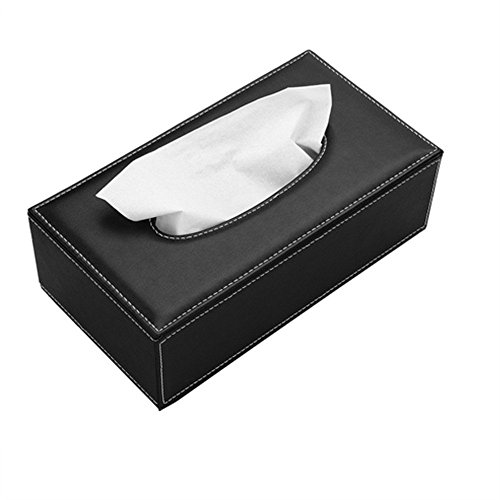 Better-love Luxury PU Leather Rectangular Tissue Box Holder Cover Case Tray Pumping for Home Office Car Automotive (Black)