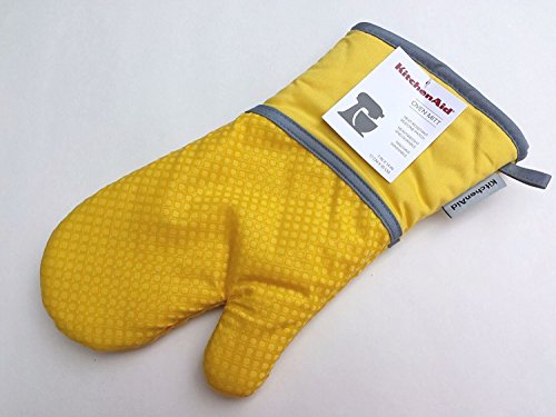 -. Title : KitchenAid Cotton Oven Mitt, Microfiber Lined, Printed Grid Silicone Grips