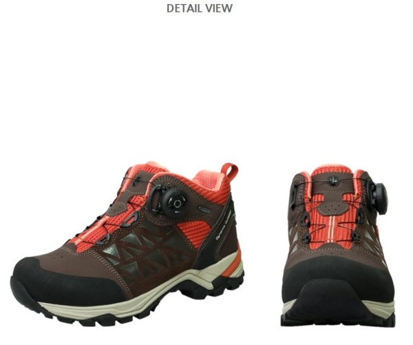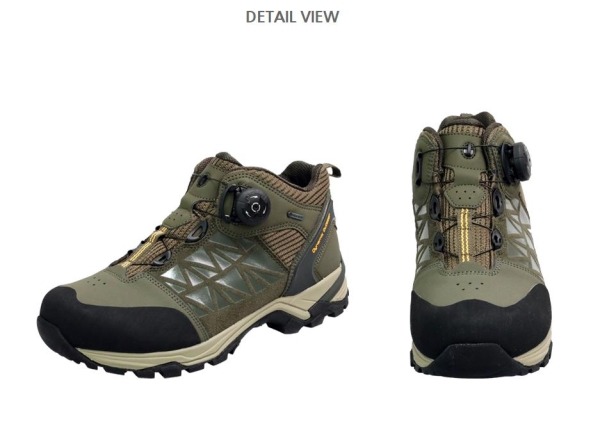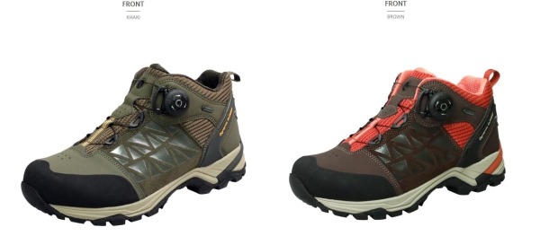 ① 당일 산행 및 중장거리 산행에 적합한 미드컷 등산화에 탈착화가 편리한 다이얼 시스템 적용