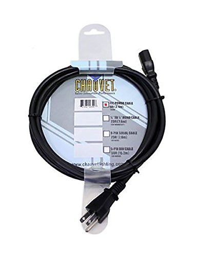 ReleaseDate : 2010-03-01 Studio : Chauvet Publisher : Chauvet Binding : Electronics Product Description Chauvet power cables are made specifically for lighting and meet stringent standards of suitability and quality. #8226; Connectors: NEMA 5-15P to IEC #8226; Length: 8 ft. #8226; Conductors: 3 #8226; AWG: 16 #8226; Impedance: 112 ohms. 0