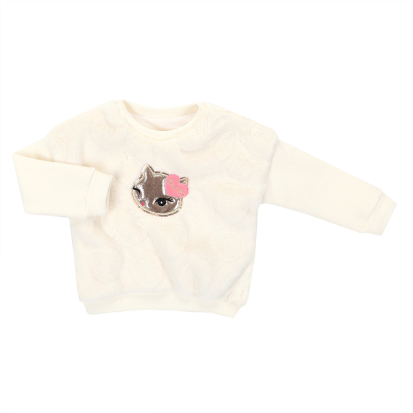포근한 화이트 컬러의 버블 퍼 맨투맨 티셔츠 입니다. 라셀 소재로 만들어져 따뜻하고 착용감이 편안합니다. 소매에는 솔리드 다이마루 원단으로 배색하여 활동하시기 더욱 편안합니다. 속에는 기모처리가 되어 있습니다. 고양이 얼굴 포인트로 귀여운 느낌을 더해주었습니다. 데님 팬츠나 치랭스와 코디하기 좋은 맨투맨 아이템입니다.