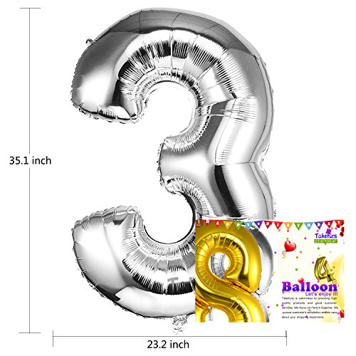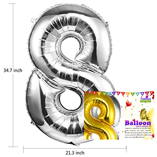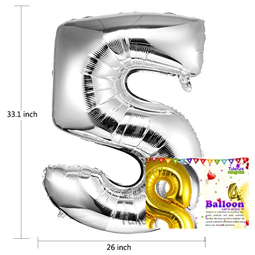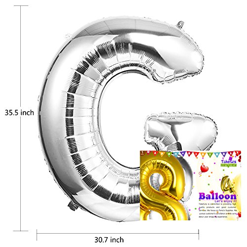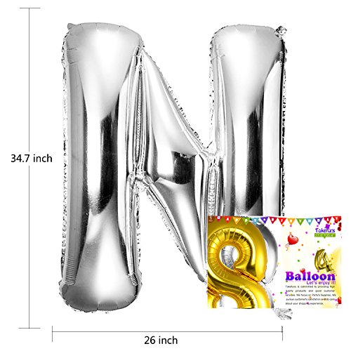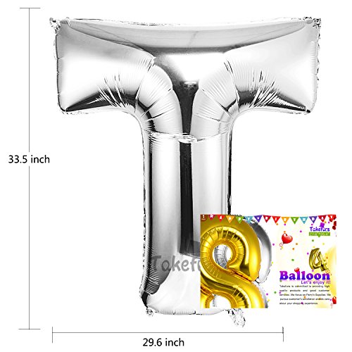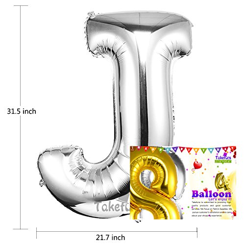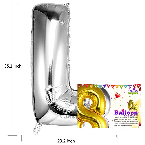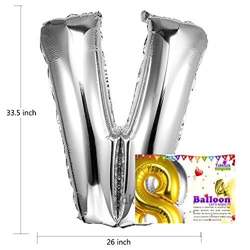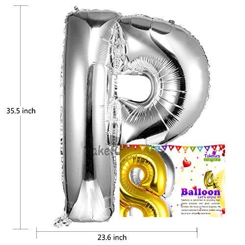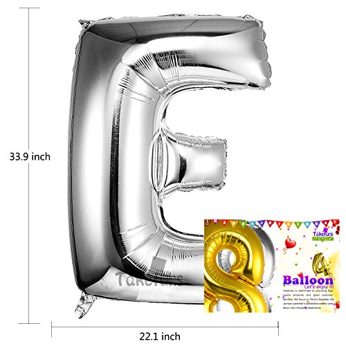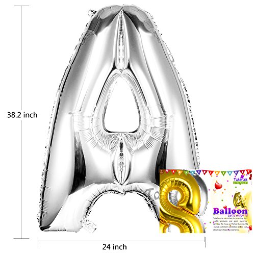 Takefuns 101,6cm Silber [schwimmfahig] Alphabet Zahl Ballon Geburtstag Party Dekorationen Folie Mylar Helium Buchstabe Luftballons