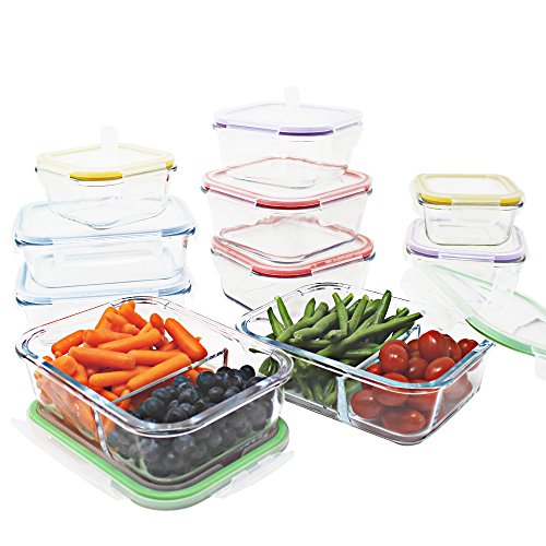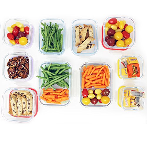 Jalousie 20 Pieces Borosilicate Glass Food Storage Meal Saver Containers with vented Locking Lids - BPA Free Airtight Oven Freezer Dishwasher and Microwave Safe Airtight Reusable Food Container Set