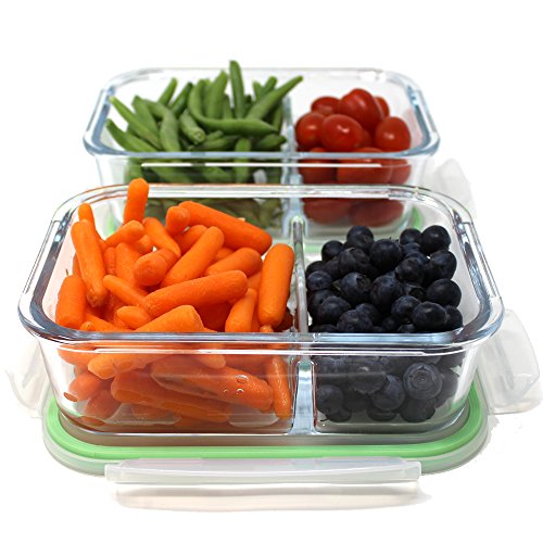 10 glass containers: 2 x 35 oz containers (4.3 cups / 1040 ml) with portion control feature, 2 x 27 oz containers (3.3 cups / 800 ml), 2 x 22 oz containers (2.7 cups / 640 ml), 2 x 18 oz containers (2.2 cups / 520 ml), 2 x 11 oz containers (1.3 cups / 320 ml)