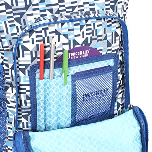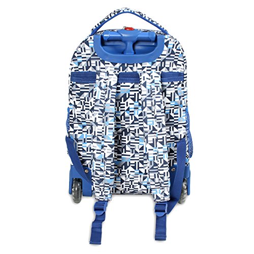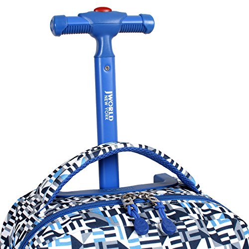 * About J World New York Bold patterns and sophisticated designs are J World New York’s Unique features. Inspired by the New York City Lifestyle, each collection accommodates different needs and looks for active and fashion conscious people. Our brand also collaborates with artists from all over the world to further polish and perfect our designs so that we can offer unique and innovative products to our customers. From backpacks and messenger bags to luggage, duffel bags and tote bags, our brand encourages your style personality. 'REVEAL YOUR COLOR WITH J WORLD NEW YORK' * Features · PEFECT SIZE FOR SCHOOL: Dimension of 17 x 12 x 8.5 inches Rolling Backpack · SUPER COMFORT Air Mesh Cushion padded shoulder straps with SLIP-IN system for convenience · SAFETY AT NIGHT: REFLECTIVE TAPE for Increased Night Visibility · TRAVEL WITH EASE: Carefully designed to PERFECTLY fit under the airplane seat or overhead compartment · SUPERIOR QUALITY: DURABLE 600D POLYESTER WATER RESISTANT Bag with RUST-FREE 3 stage aluminum locking handle with COMFORT Padded carry handle · LARGE CAPACITY: Main Compartment, 2 Side Mesh Pockets Front pocket organizer with Pencil holder, Key Fob, and Zipper pocket. * Specific Information · Dimension: 17 x 12 x 8.5 inches · Capacity (Volume) : 28.4 L / 1.00 Cuft · Weight : 3.5lb [1.6 Kg] · Fabric : 600D Water Resistant Polyester, PU-Coated Fabric (PVC Free)"