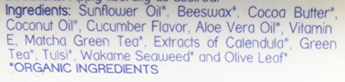Sunburned lips require extra attention. This potent antioxidant blend of green tea, tulsi, waka me and olive leaf soothes and moisturizes dry lips. Ingredients: Helianthus annuus (sunflower) seed oil*, beeswax*, Theobroma cacao (cocoa) seed butter*, Cocos nucifera (coconut) oil*, natural cucumber flavor, aloe barbadensis oil*, tocopherol (vitamin e), camellia sinensis (matcha green tea) leaf*, extracts of calendula officinalis (calendula) flower*, camellia sinensis (matcha green tea) leaf*, ocimum tenuiflorum (tulsi) leaf*, alaria esculenta (wakame seaweed)* and olea Europa (olive) leaf** certified organic.Feature