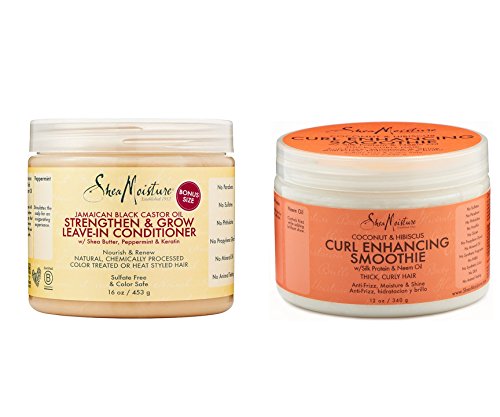 -. Feature : ULTRA RICH MOISTURIZING DUO - Shea Moisture Conditioner 2-Pack Includes 16oz. Black Castor Oil Leave-In Conditioner & 12oz. Curl Defining Styling Cream / STRENGTHEN, GROW & REPAIR - Reparative Leave-In Formula Helps Stimulate Healthy Growth With Hydrating Jamaican Black Castor Oil, Keratin & Peppermint / FIGHT FRIZZ & BOOST SHINE - Sweet Smelling Coconut & Hibiscus Curl Definer & Detangler Smooths Split Ends & Gives Locks Vibrant, Shiny, Bouncy Finish / NATURAL GREEN INGREDIENTS - Sulfate-Free Products Always Use Certified Organic Elements When Possible; Helps Protect Chemical & Heat Damaged Hair / INVIGORATING SCENT - Natural Flower & Fruit Fragrances Provide a Fresh, Clean Scent for Hours; Great for Straight, Curly, Dry, Oily, Fine, Thick & Sensitive Hair Types