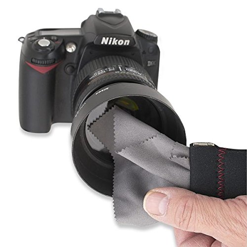 Super soft and extra large microfiber lens cloth Housed inside of a protective pouch | microfiber cloth dimensions: 8.0 inch x 8.0 inch