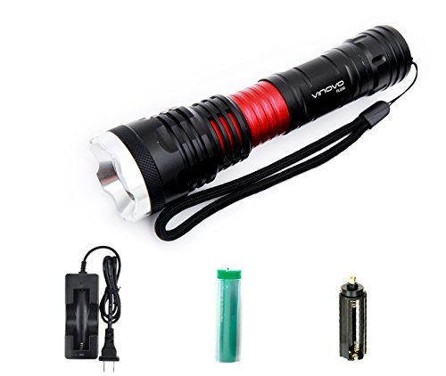 VINOVO Led Flashlight with 18650 Rechargeable Battery Cree XML T6 Powerful Outdoor Waterproof Tactical LED Flashlight Red