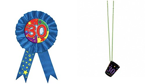 30th Birthday Ribbon & Shot Glass Necklace Set (2 Pcs)