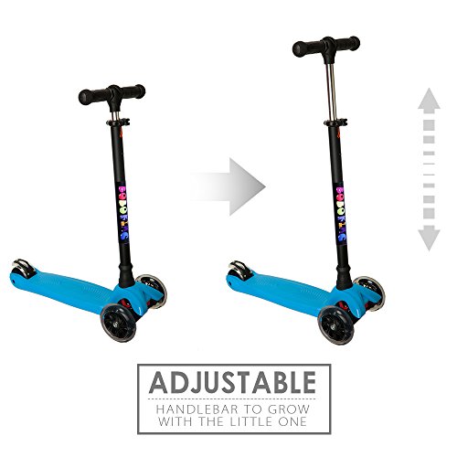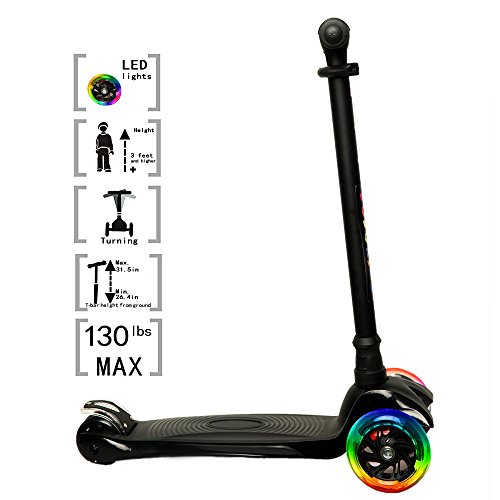 -. Brand : BOBOKING -. Feature : The BOBOKING was engineered and constructed for superior durability.All the metal in the scooter is wrapped in rubber. It is a safer scooter for a child. / 100% SATISFACTION GUARANTEE - Buy with confidence. If there is a problem with your scooter we'll gladly refund you in full. / The BOBOKING's wheels are made of the highest quality PU. It is the quality choice in 3-wheel scooters for young children ages 2-12. / ADJUSTABLE HANDLEBARS: that grow with your child. The handlebars adjust from 26.5 to 31.5 inches from the deck. He or she can hang on tightly to the comfortable dual-injection grips. / STEEL PLATE REINFORCED DECK: for maximum support and stability. Maximum weight capacity of 130lbs, which is more than double other leading brands. -. IsAutographed : 0 -. IsMemorabilia : 0 -. Label : BOBOKING -. Manufacturer : BOBOKING -. MPN : BO-1001 -. PartNumber : BO-1001 -. ProductGroup : Sports -. ProductTypeName : OUTDOOR_RECREATION_PRODUCT -. Publisher : BOBOKING -. Studio : BOBOKING -. Title : Kick Scooter for Kids ages 2-12, 4 Adjustable Height T-Bar Scooter with 3 Wheels and LED lights, 150lb Weight Limit kid Kick Scooters, BOBOKING Christmas Gifts for Children