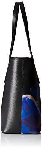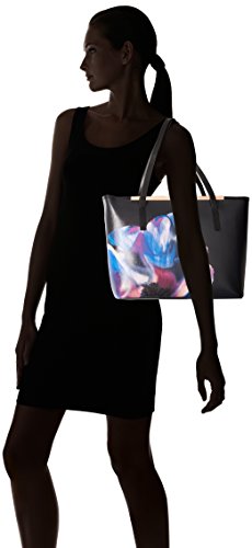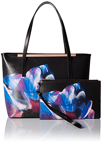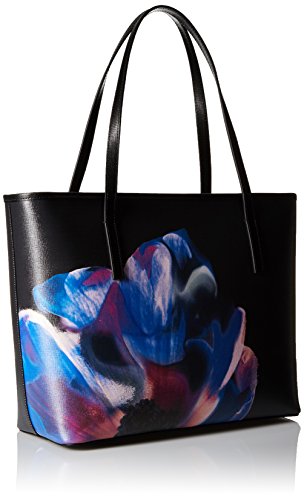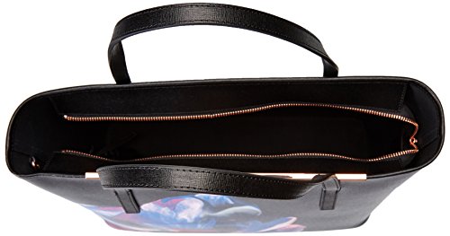 Textured tote featuring placed floral graphic at front and metallic hardware at entry