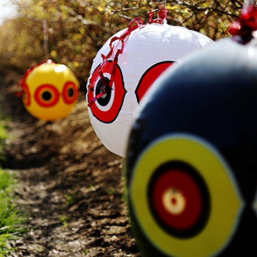 -. Feature : Repel all kinds of pest birds, effectiveness proven by many customers. / The 3-pack Package Contains 3 Color Balloons: Yellow, White, and Black for maximum effect / Bird Scare Reflection Ribbon included / Weatherproof, 18 / Predator eyes scare birds, inexpensive bird control bird repellent