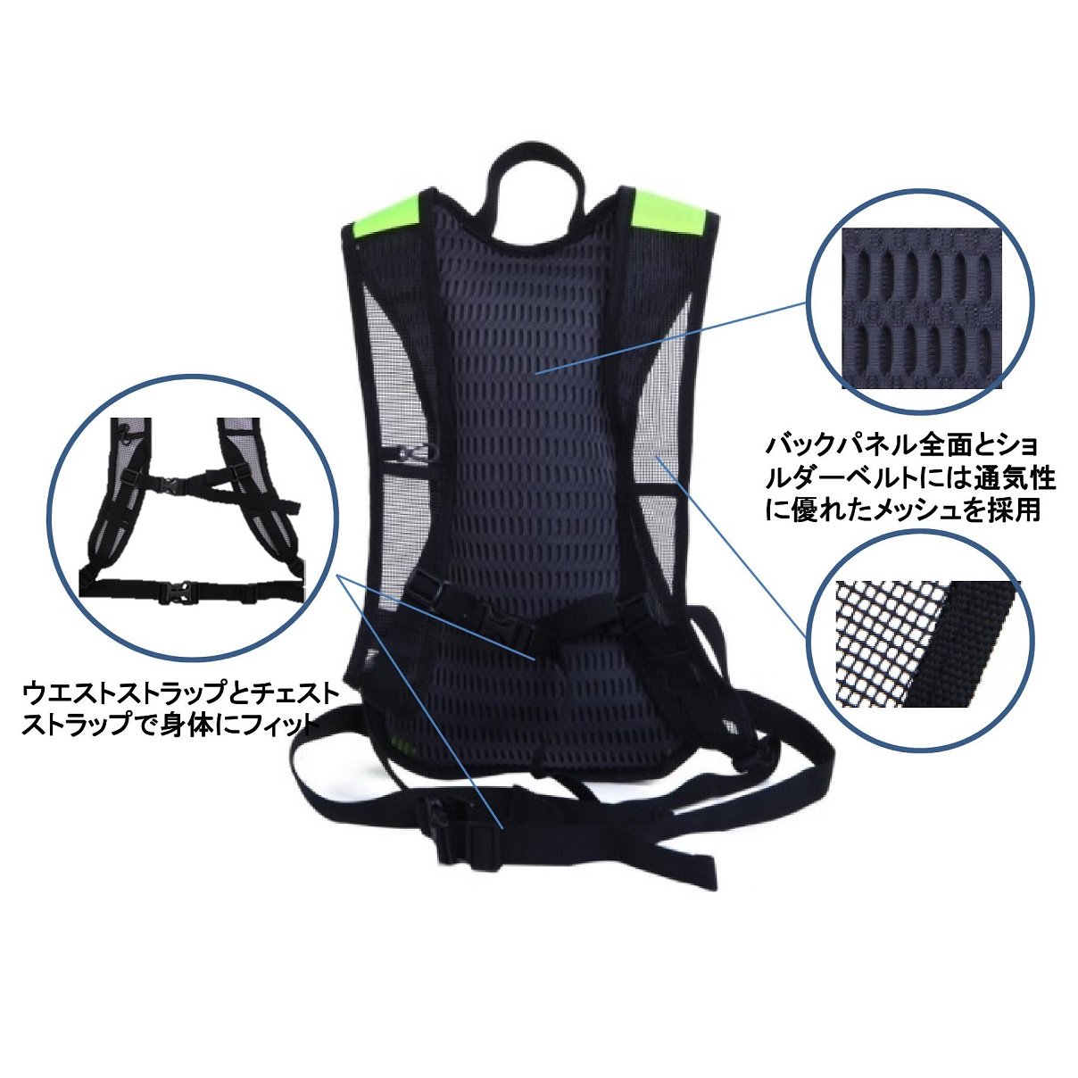 - Adopting a mesh excellent in breathability for the entire back panel that fits the body and the shoulder belt enhances comfort.
