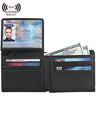 -. Feature : GENUINE LEATHER MATERIAL: Made of natural genuine leather with special fabric lining, lightweight, durable and flexible. Soft to touch, resistant to scratch and distort. No chemical odour. SIZE: 4.3"*3.6"*0.5" / RFID BLOCKING: Advanced RFID blocking technology and special material can block 13.56 MHz or higher RFID signals. Safely protect your personal information and bank cards, credit cards, debit cards, driver license and ID cards from scaning and degaussing / FEATURE: RFID blocking black genuine leather wallets can show your masculinity and gentleman disposition. Designed with 9 Credit Card Slots, 1 ID Window, and 2 Currency Pouch, it can hold at least 12 cards, some folded cash, notes or receipts safely. Easy to carry and match with jeans or a suit / BEST GIFT: This versatile and stylish wallet is a great present for a birthday, anniversary, valentine's day, Father's Day, Christmas, New Year or another significant event / ABOUT ZANDO: Zando is an American registered brand, all products are sold exclusively by USA 1st Store authorized retailers, all products are 100% brand new and in high quality. If you are not satisfied with our RFID wallet, simply return it within 30 days for a full, no questions asked refund