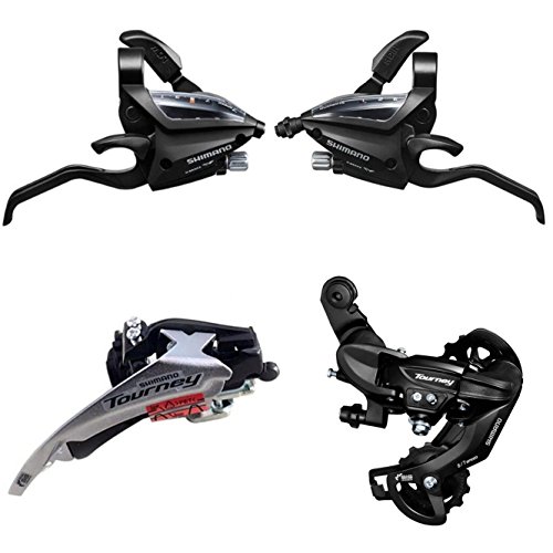 Studio : YAD Publisher : YAD Binding : Misc. Product Description Shimano ST-EF500 3x7 Speed Shifter Brake Lever Combo with Inner Cables Compatible with V-brake systems, suitable for 22.2mm diameter handlebar. Trigger type handle, make it easier for variable speed operation. Pair included: Left Right shifter set, 2 x stainless steel inner cables, NO housing. * A lightweight set of integrated shifters/levers great trigger shifters. * Designed to make shifting and braking a seamless process for easier biking. * High flexibility, Visible Optical Gear Display indicator to confirm the gear position with number at a glance. * Weight: about 360g/pair. Shimano Tourney FD-TY500 6/7 Speed Front Derailleur * Dual Pull Design: Compatible with top or bottom routing. * Clamp size: 31.8mm/34.9mm. * Suitable for 42-34-24T crankset. * Dual SIS front index shifting, mountain double or triple. * Weight: about 170g/pc. Shimano Tourney RD-TY300 6/7 Speed Rear Derailleur Direct Mount * For modern design bike and performance. * New 13 / 13T pulley. * Advanced light-action design. * Direct attach mount Rear Derailleur. * Weight: about 320g/pc. NOTE: This is Direct Mount, if your bike frame with hook, you can use it. NOTE: When you receive the item, don't squeeze the trigger directly for shifting, this can easily damage the spring, you need to pull the cable or install it on your bike for shifting. About "The seller88" Store: 100% new and high quality, no original package, item was shipped within 24 hours. We have the best after-sales service, any questions please feel free to contact us, we are always here to help you. 0
