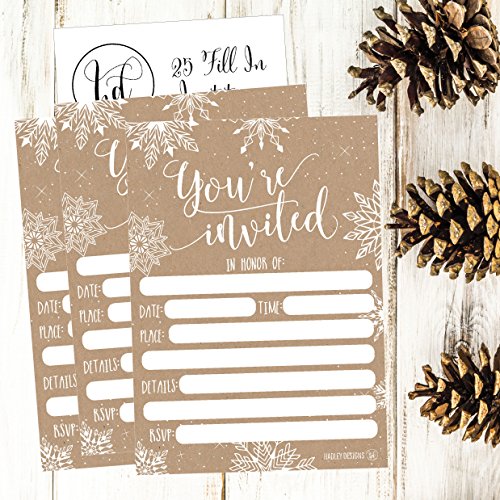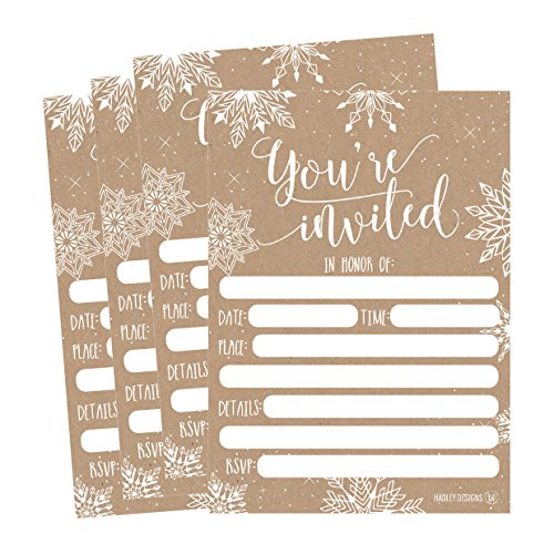 (Hadley Designs)/Stationery Party Supplies/Party Supplies/DIRECT FROM USA/25 Snowflake Christmas Holiday Invitations, Rustic Winter New Years Bridal or Baby Shower Invit...