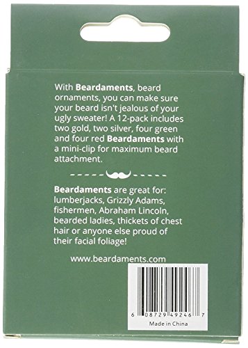 Beardaments Beard Ornaments, 12pc Colorful Christmas Facial Hair Baubles for Men in the Holiday Spirit, Easy Attach Mini Mustache, Sideburns, Goatee Whisker Clips, Festive Red, Green, Gold, Silver Mix